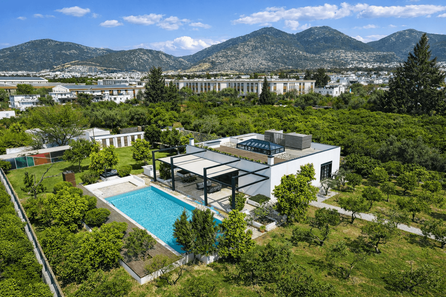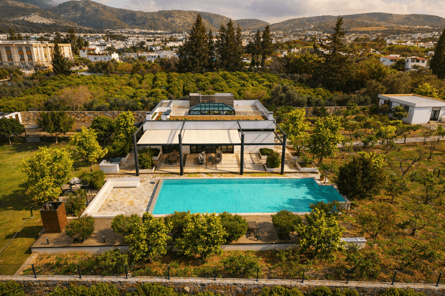 Bitez'in yemyeşil merkezinde, anayola birkaç adım mesafede. Olabilecek en yüksek mahremiyeti en merkezi konumla buluşturan bir portföy.